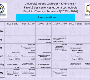 Emploi du temps du Département de génie électrique -L2