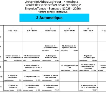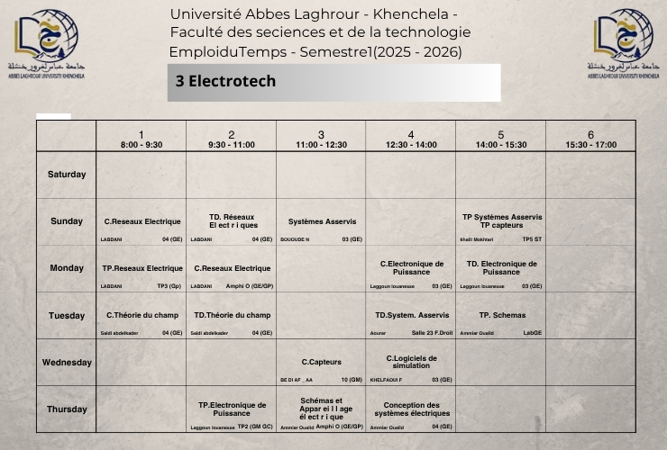 Emploi du temps du Département de génie électrique -L3