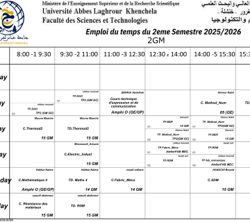 Emploi du temps du Département de génie mécanique -L2