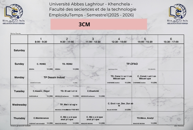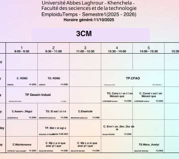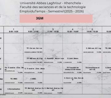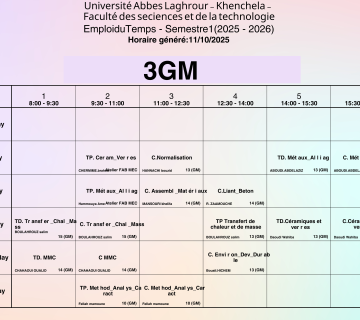 Emploi du temps du Département de génie mécanique -L3