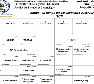 Emploi du temps du Département de génie mécanique-M1