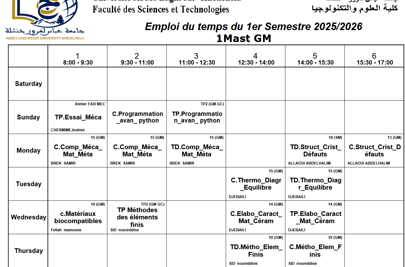 • التاليEmploi du temps du Département de génie mécanique-M1