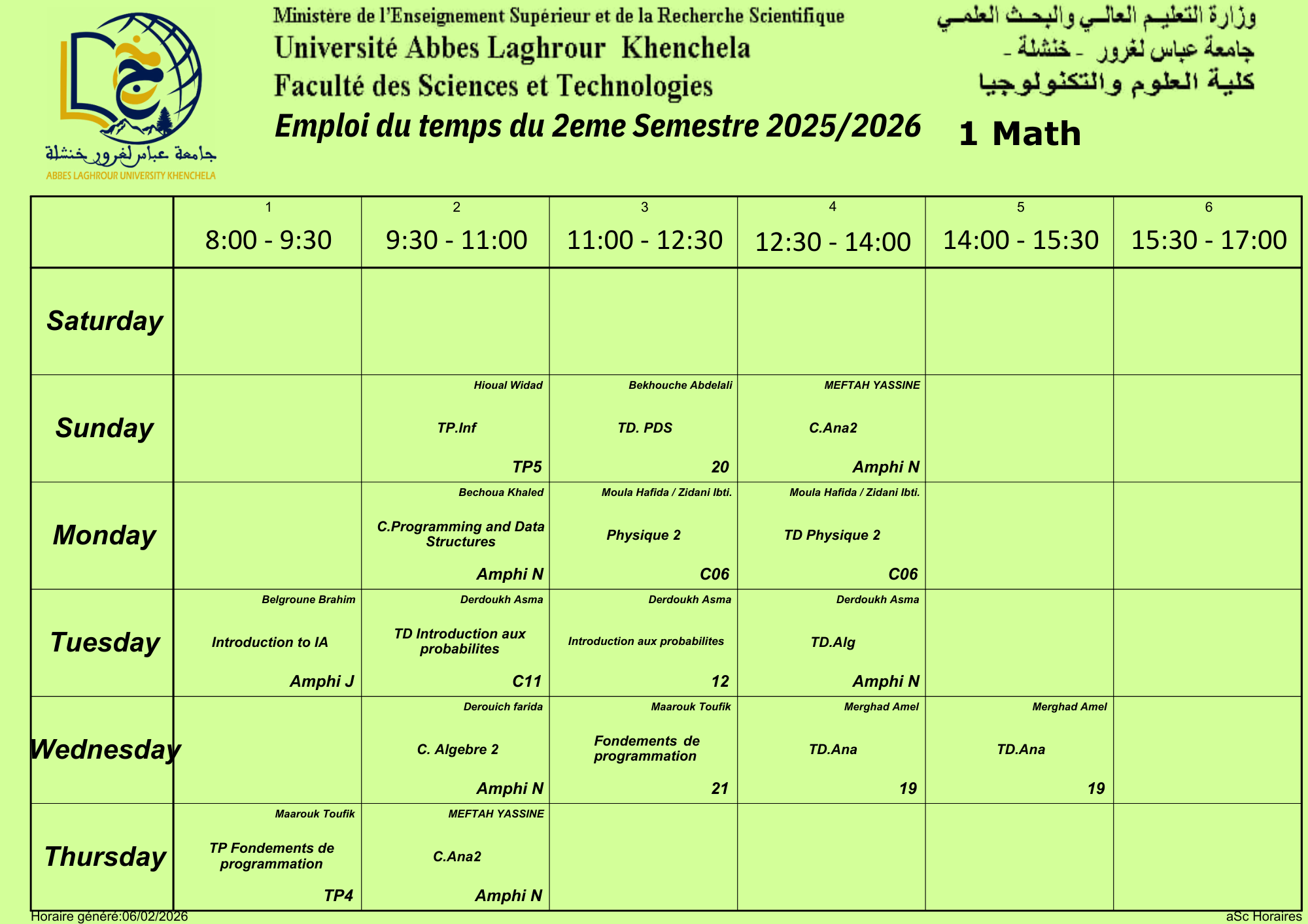 • التاليEmploi du temps du département de mathématiques -L2