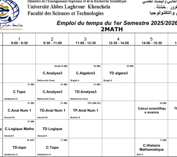Emploi du temps du département de mathématiques -L2 25/10/2025