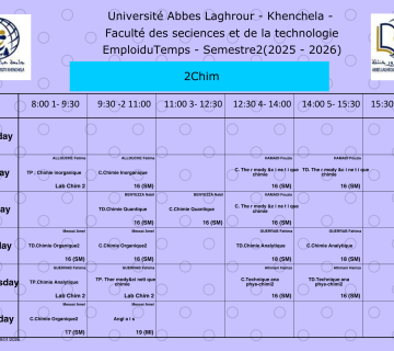 Emploi du temps du département des sciences des matériaux -L2