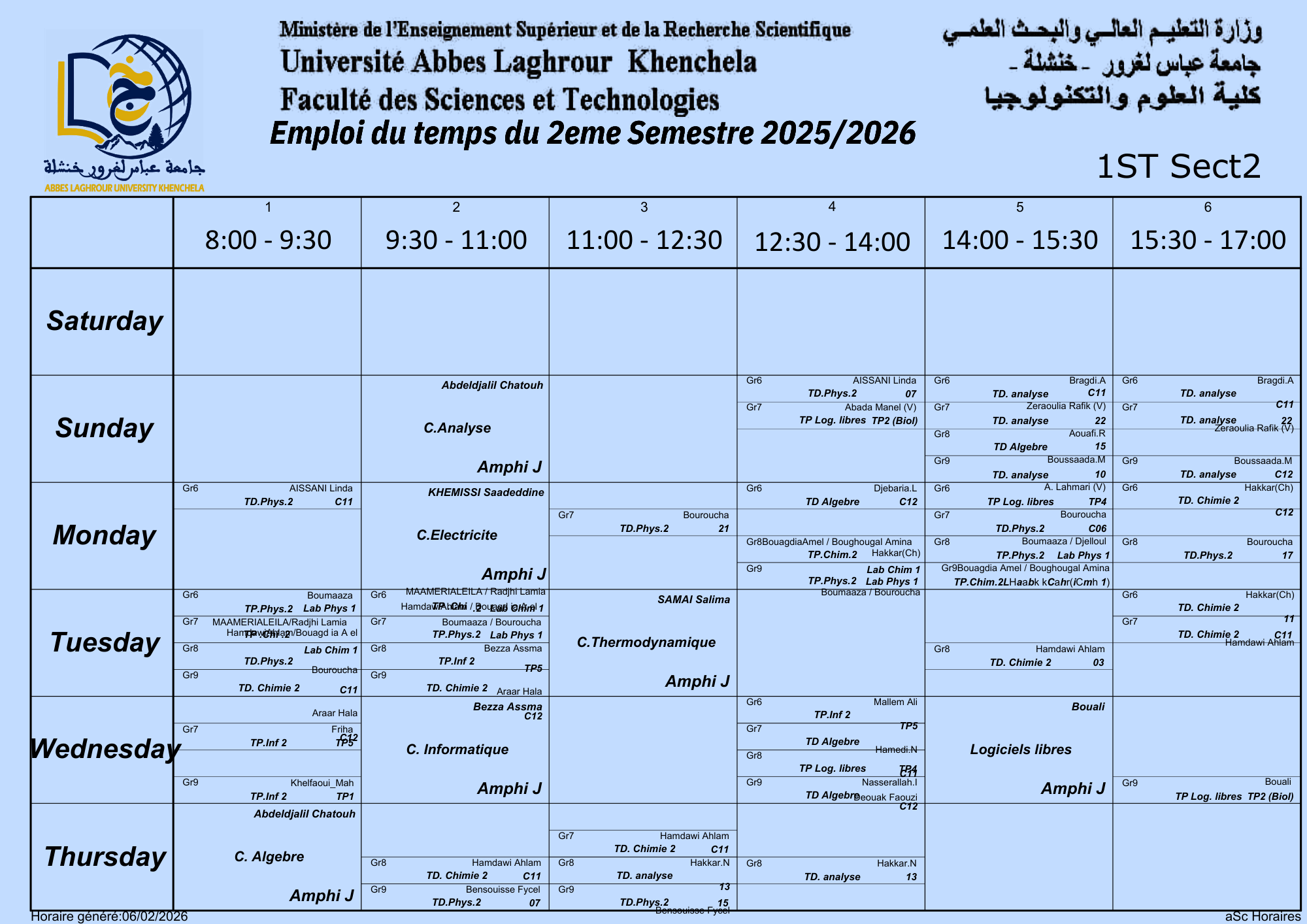 Emploi du temps du Département des Sciences et Technologies -L1