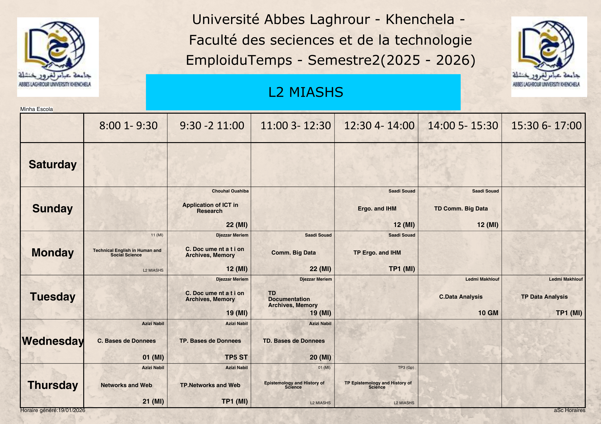 Emploi du temps du département d’informatique -L2