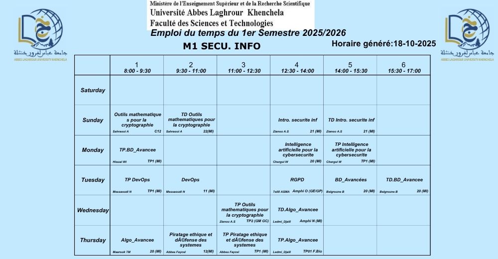 Répartition horaire modifiée pour le premier semestre de l’année universitaire 2025/2026