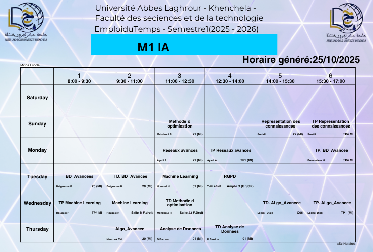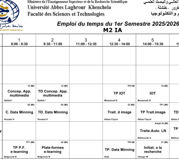 Emploi du temps du département d’informatique-M1