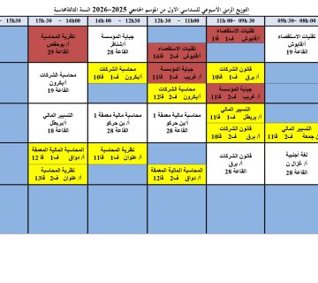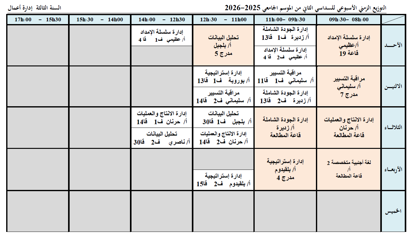 Emploi du temps hebdomadaire du premier semestre de l’année universitaire 2025–2026 – Troisième année Gestion des Affaires Activités