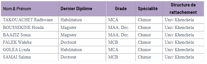 Chef d’équipe : Dr. BENALI-CHERIF RIM