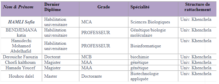 Chef d’équipe 1 :Dr HAMLI Sofia