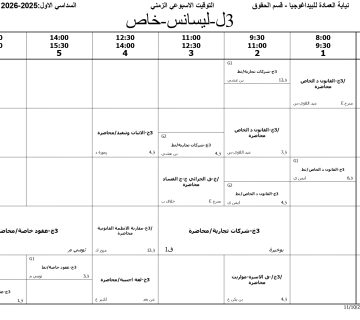 Horaire hebdomadaire des étudiants de 3e année de droit privé