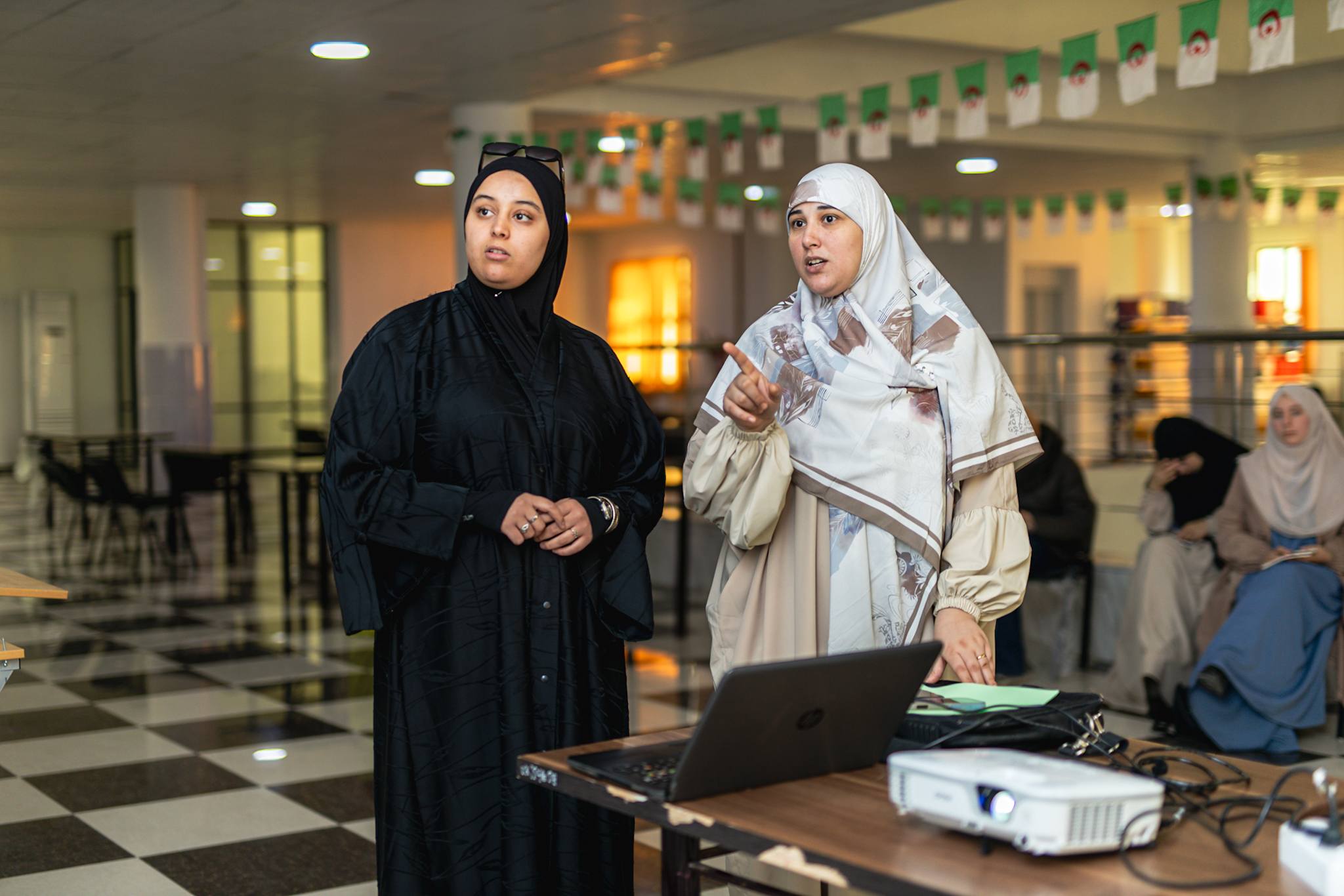 Aperçu des Journées Portes Ouvertes sur l’innovation et l’entrepreneuriat organisées par l’Université Abbes Laghrour Khenchela pour les étudiants relevant du Décret Ministre 1275. Cet événement visait à les accompagner et à les outiller pour transformer leurs idées et projets de fin d’études en startups et brevets, grâce à la création d’espaces de conseil, d’échange et de démonstrations pratiques.