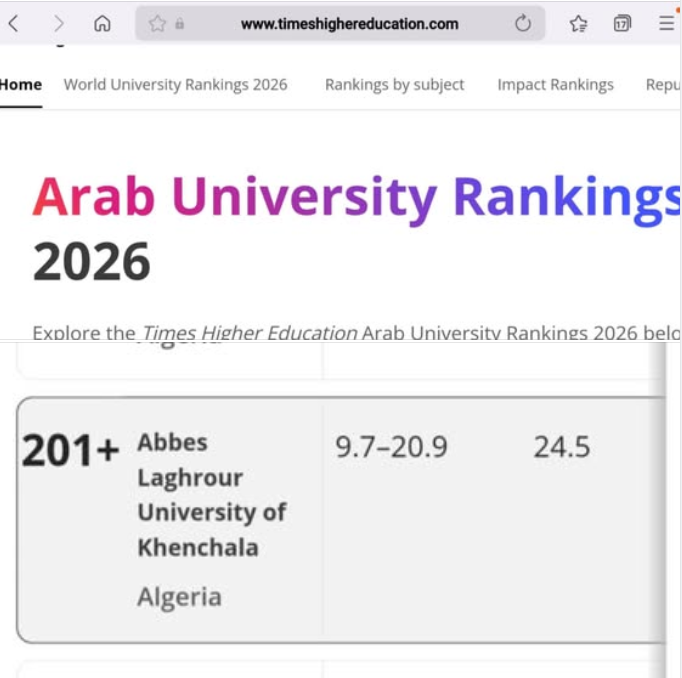L’université Abbes Laghrour se distingue par son quatrième rang national dans le classement THE Arab.