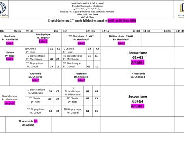 EMPLOI DU TEMPS 1er année médecine semaine du 01 au 05 mars 2026