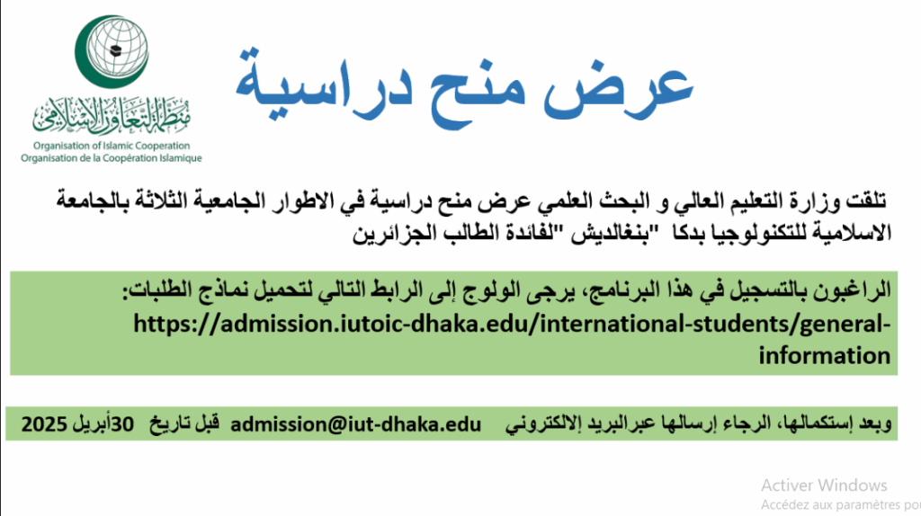 Offre de bourses d’études de l’Organisation de la coopération islamique