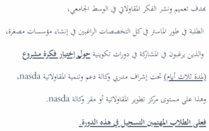 Organisation de formations sur la sélection d’idées de projets pour le Centre de développement de l’entrepreneuriat
