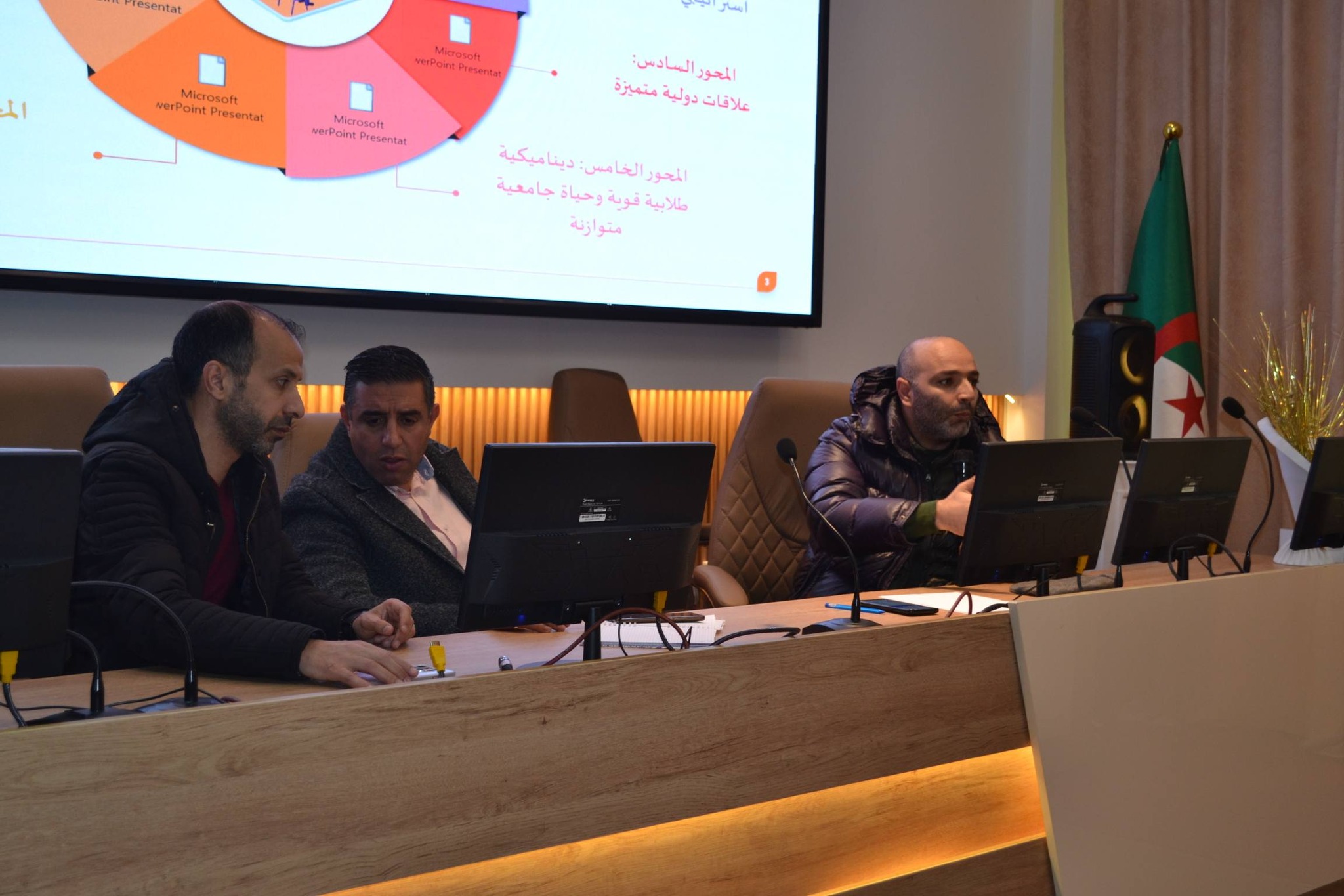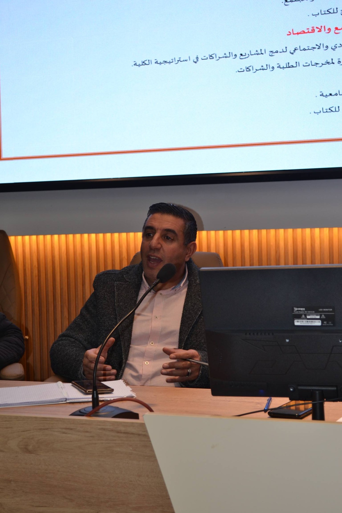 Le projet quinquennal de l’établissement 2026-2030 a fait l’objet d’une réunion présidée par le doyen de la Faculté des sciences économiques, commerciales et de gestion, en présence du personnel administratif et enseignant, ainsi que des professeurs et doctorants. Cette réunion visait à discuter et à enrichir le projet dans ses différents domaines d’action. À la suite de la réunion, des ateliers ont été organisés afin d’affiner les procédures et les programmes pratiques répartis selon les huit axes du projet.