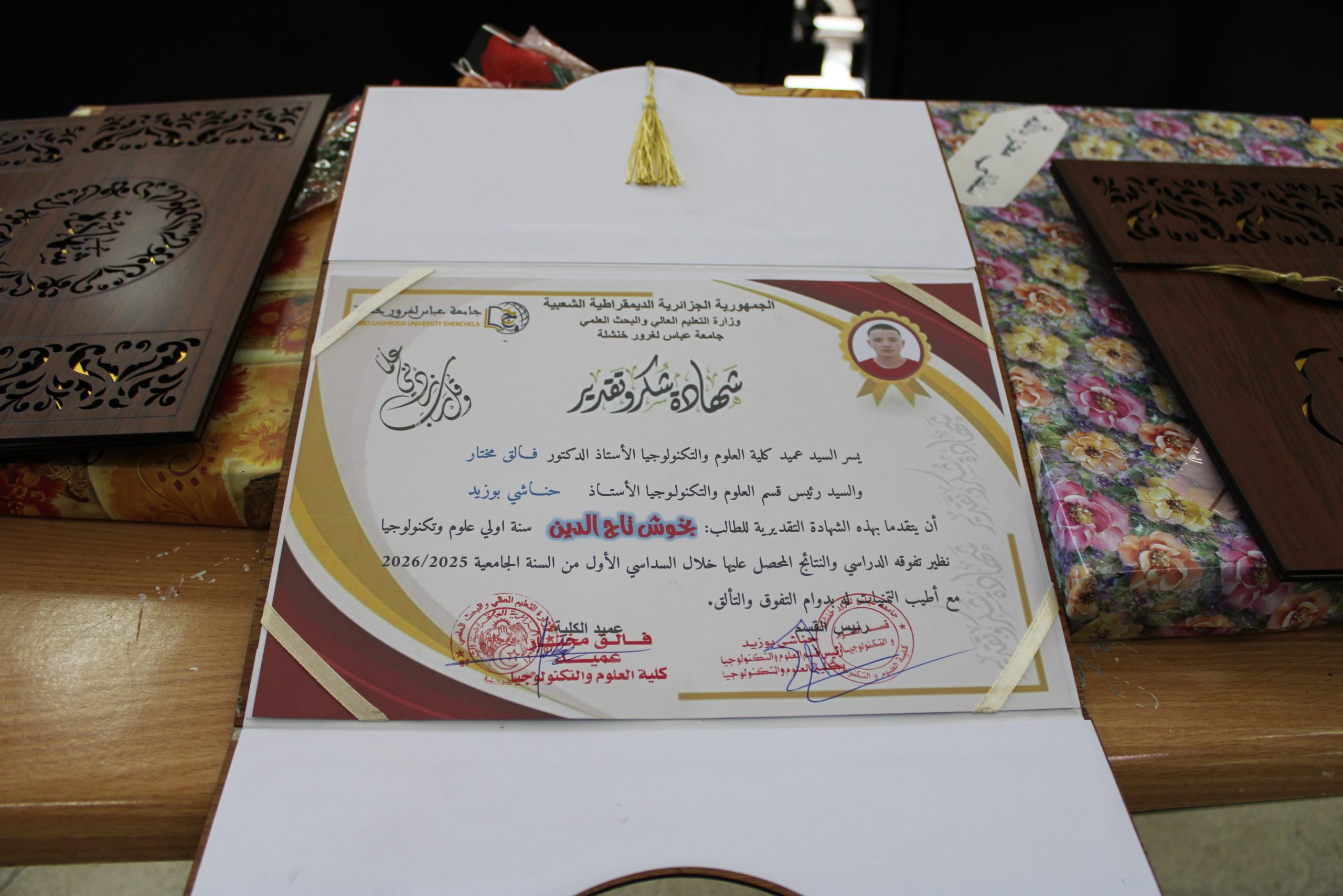 Dans le cadre d’une initiative témoignant de l’engagement de l’administration de la faculté à encourager l’excellence académique, le professeur Hanachi Bouzid, directeur du département des sciences et technologies, a présidé aujourd’hui une cérémonie en l’honneur des étudiants de première année les plus méritants. Le professeur Falek Mokhtar, doyen de la faculté, et Mme Laour Amer, coordinatrice des activités et responsable des activités culturelles et scientifiques, étaient également présents.