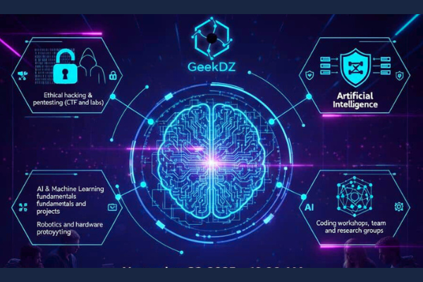 Nous sommes ravis d’annoncer l’ouverture officielle du GeekDZ Club, la communauté universitaire complète dédiée à la cybersécurité, au hacking éthique et à l’intelligence artificielle, à l’Université de Khenchela. Date et Heure : 20 Novembre 2025 – 10h00 Lieu : Bibliothèque de la Faculté des Sciences et de la Technologie – Université de Khenchela Le club offre aux étudiants l’opportunité d’acquérir des compétences pratiques, de participer à des ateliers et de collaborer sur des projets dans les domaines de l’IA, de la cybersécurité et bien plus encore. Pour s’inscrire et rejoindre la communauté : https://geekdz.tech/ Tous les étudiants sont invités à nous rejoindre et à participer à cette initiative exceptionnelle. ... اقرأ أكثر