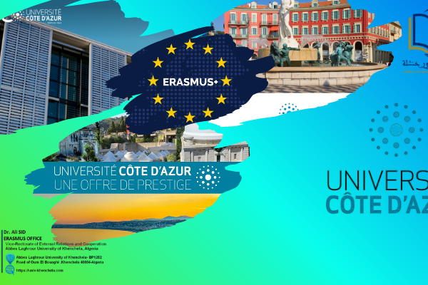 Annonce de bourse dans le cadre du programme Erasmus et de l’Université Côte d’Azur, France À l’intention des étudiants en doctorat des facultés des Sciences de la Nature et de la Vie et des Sciences et de la Technologie. Nous prions les étudiants en doctorat de bien vouloir consulter le lien de l’annonce pour plus de détails. https://www.univ-khenchela.dz/appel-a-candidature-phd-2026-biologie-sciences-techniques/ ... اقرأ أكثر