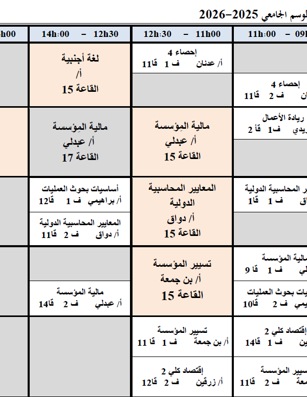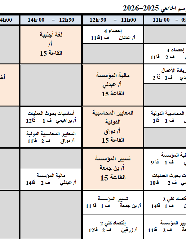 Emploi du temps hebdomadaire du deuxième semestre de l’année universitaire 2025-2026, deuxième année, Sciences financières et comptablesكلية العلوم الاقتصادية, التجارية و علوم التسيير2025-12-18