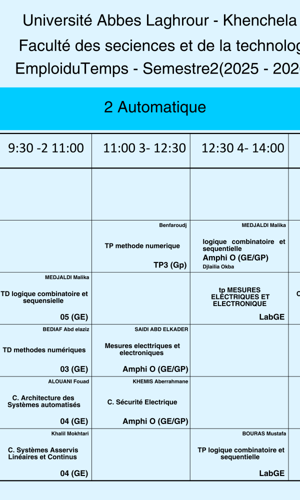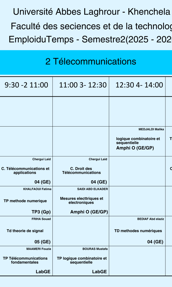 Emploi du temps du Département de génie électrique -L2