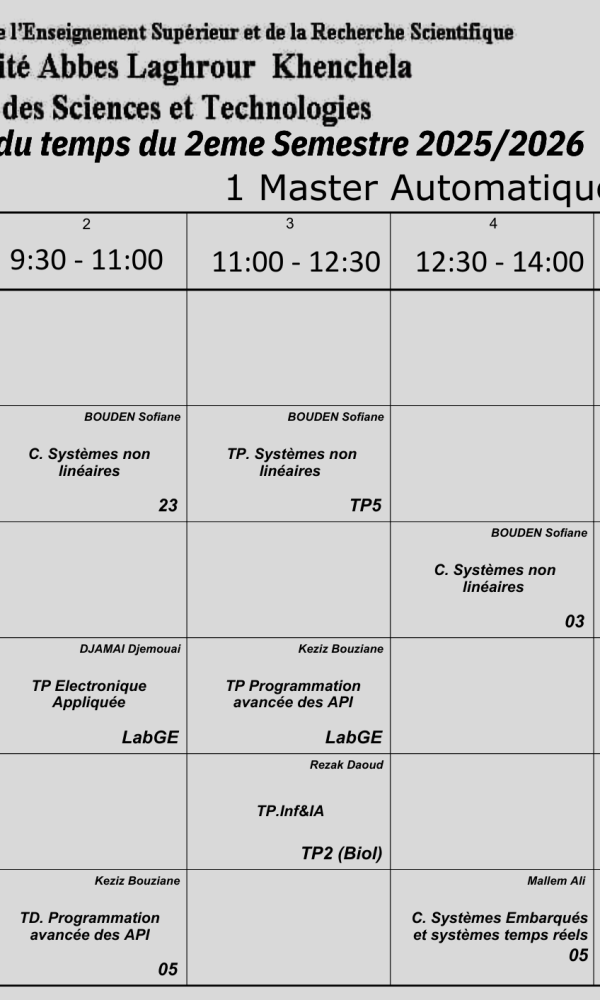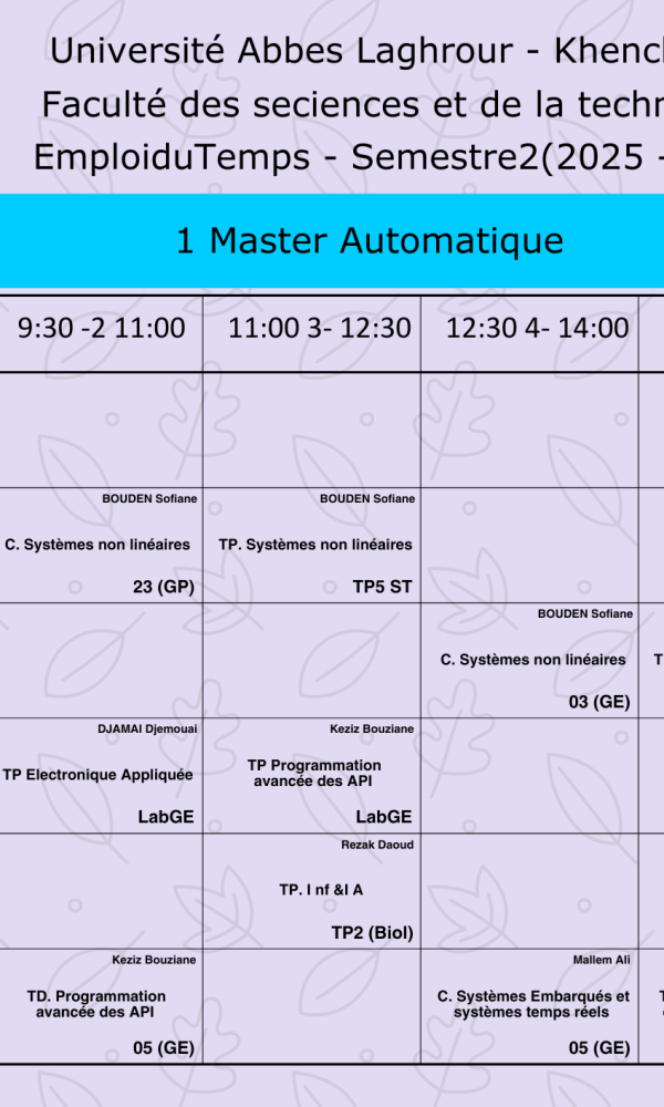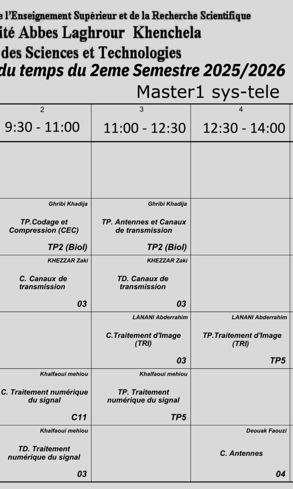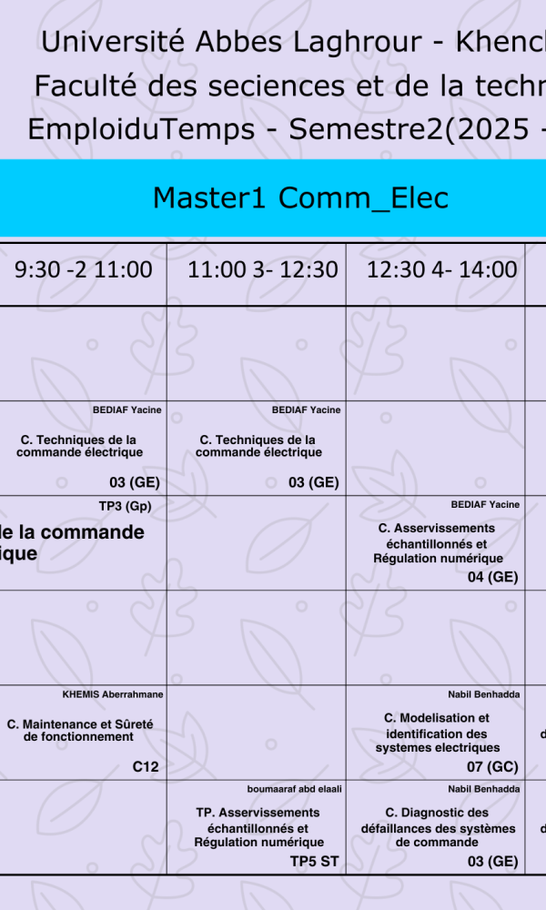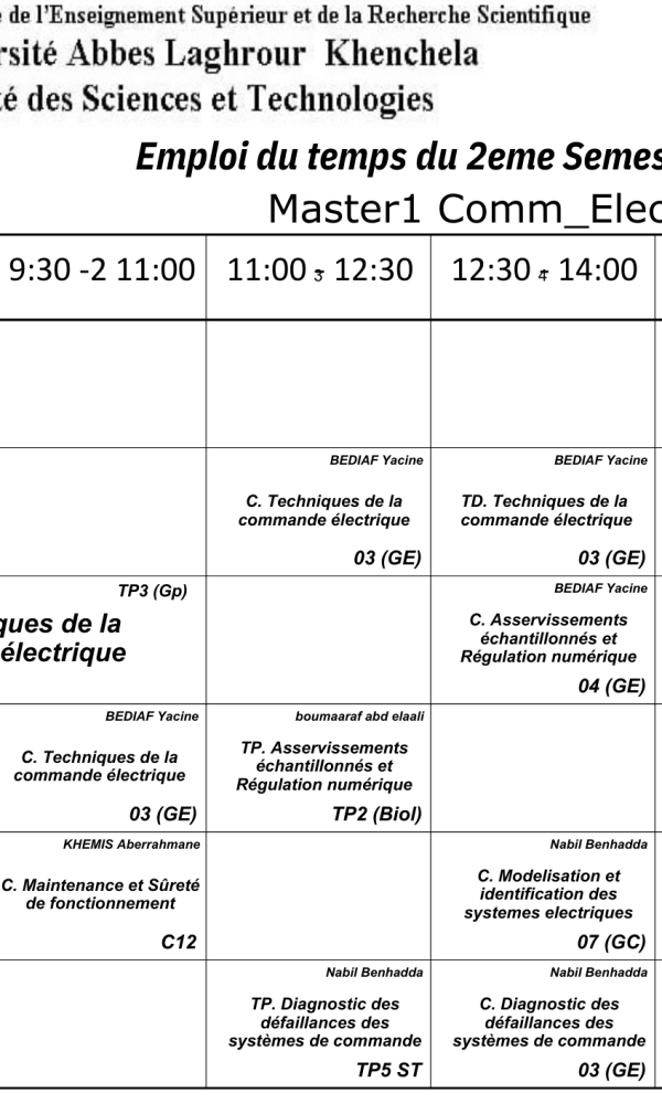 Emploi du temps du Département de génie électrique-M1
