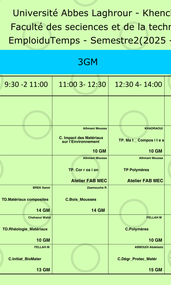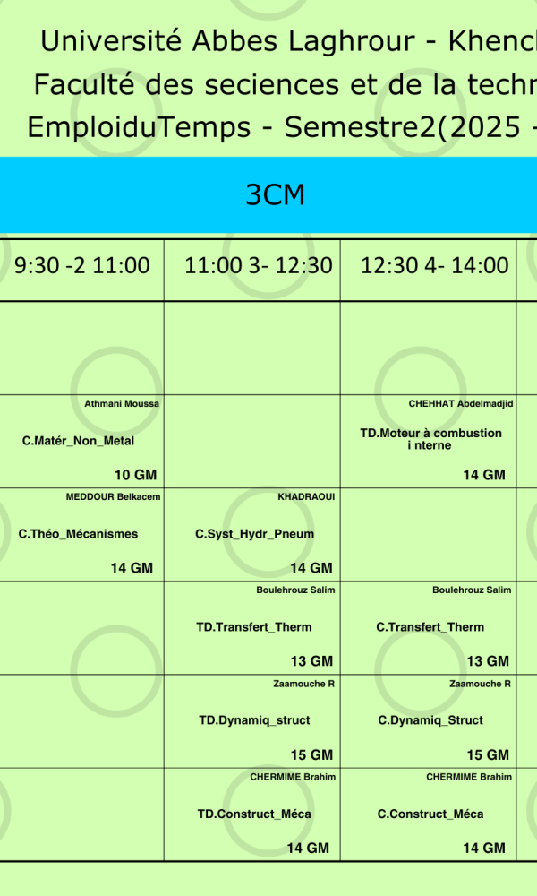 Emploi du temps du Département de génie mécanique -L3