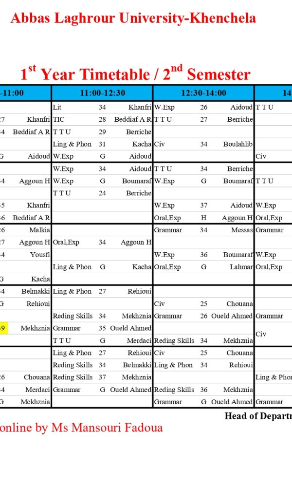 Emploi du temps du département de langue anglaise -L1
