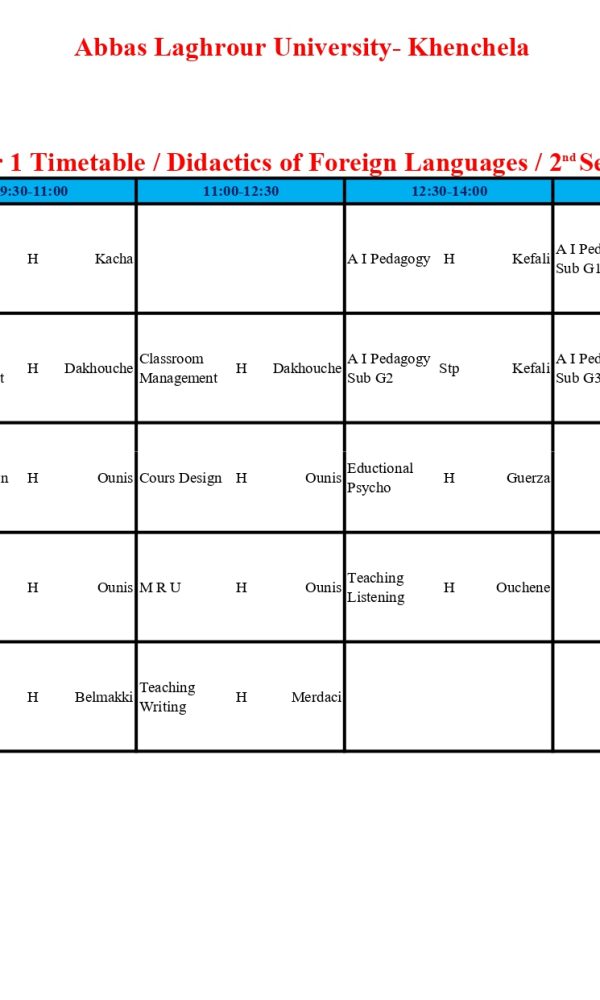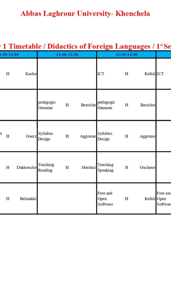 Emploi du temps du département de langue anglaise -M1