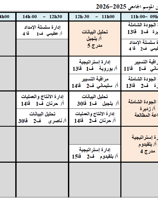 Emploi du temps hebdomadaire du deuxième semestre de l’année universitaire 2025-2026, troisième année, Administration des affairesكلية العلوم الاقتصادية, التجارية و علوم التسيير2025-12-18