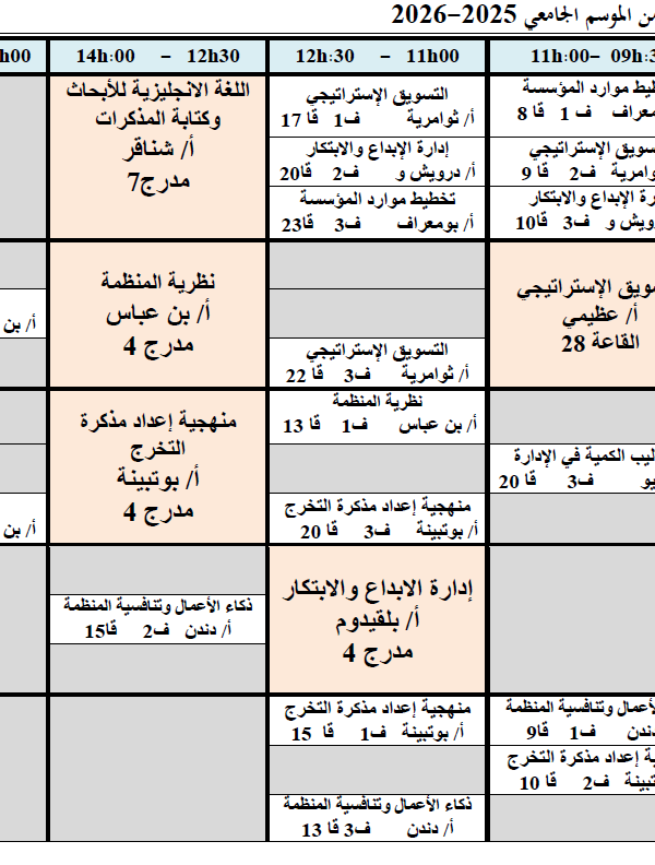 Emploi du temps hebdomadaire du deuxième semestre de l’année universitaire 2025-2026, première année de Master en administration des affairesكلية العلوم الاقتصادية, التجارية و علوم التسيير2025-12-18
