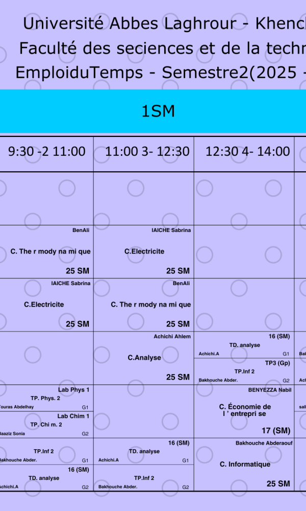 Emploi du temps du département des sciences des matériaux -L1