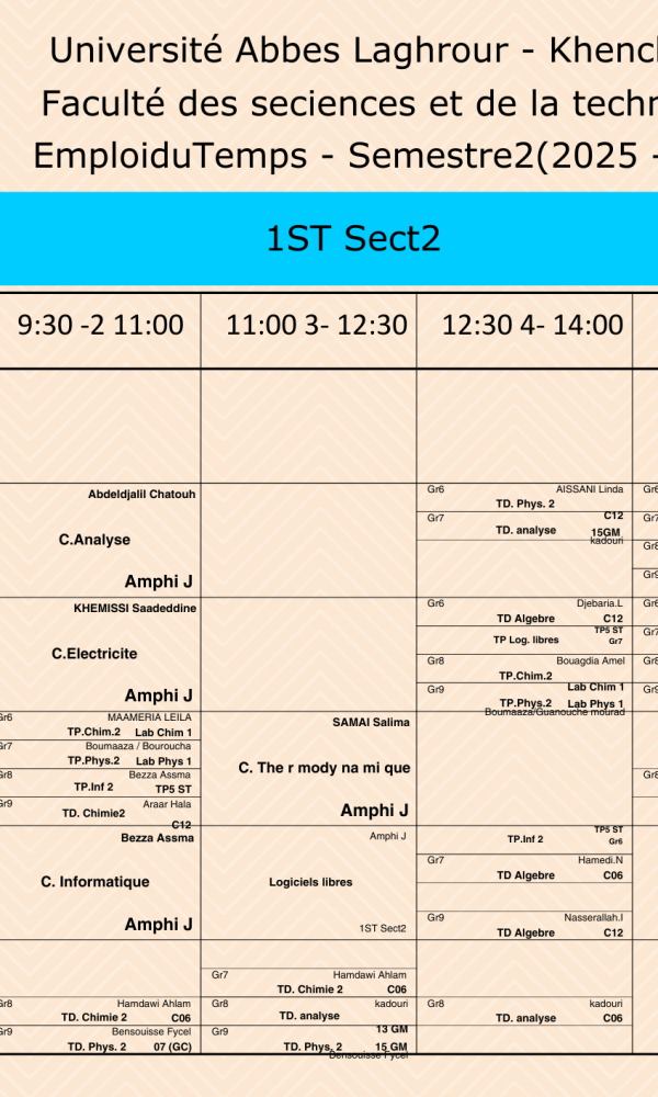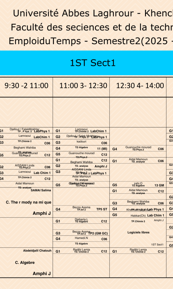 Emploi du temps du Département des Sciences et Technologies -L1
