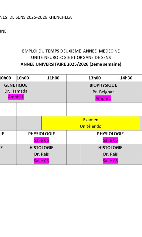 emploi du temps deuxieme année medecine unite neuro 2eme semaine 2025.2026