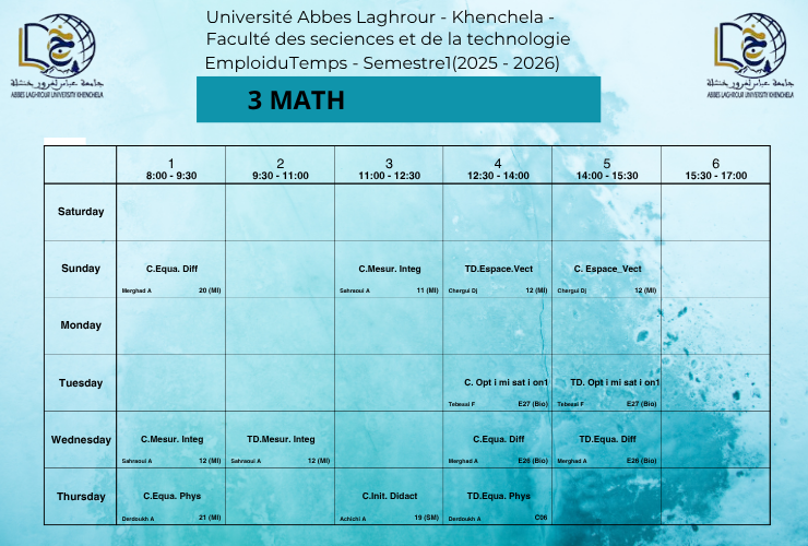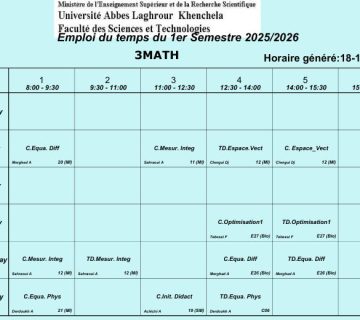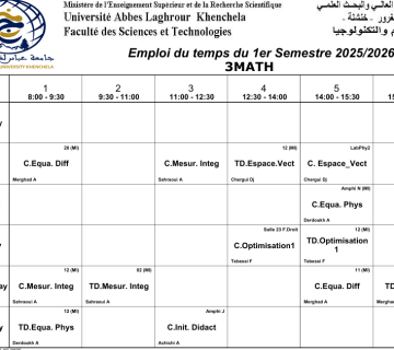 Emploi du temps du département de mathématiques -L2 25/10/2025