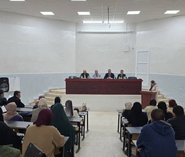 Objet : Activités scientifiques de la Faculté des Lettres et des Langues – Ouverture sur l’environnement extérieur dans le cadre du projet d’établissement tracé par la direction de l’université. La Bibliothèque Principale de Lecture Publique de Khenchela a organisé, le 04 avril 2026, en coordination avec les enseignants de la Faculté des Lettres et des Langues, la 53ème édition du « Forum du Livre ». Cette rencontre s’est déroulée en présence d’une élite d’intellectuels, de professeurs, de représentants des médias ainsi que des étudiants de la faculté. La conférence a été animée par le Dr Adami Khamissi, professeur à la Faculté des Lettres et des Langues, accompagné du Dr gasmi Said. L’événement a porté sur la présentation de l’ouvrage intitulé « Khenchela : Écho de l’Histoire et Parfum de Culture ». La rencontre a également été ponctuée par des lectures poétiques distinguées et une remise de prix aux participants. En marge de cette activité, une exposition de livres écrits par des auteurs de la région a été organisée, dans une ambiance culturelle qui a confirmé le dynamisme de la scène littéraire à Khenchela. La Direction de la Faculté...اقرأ أكثر