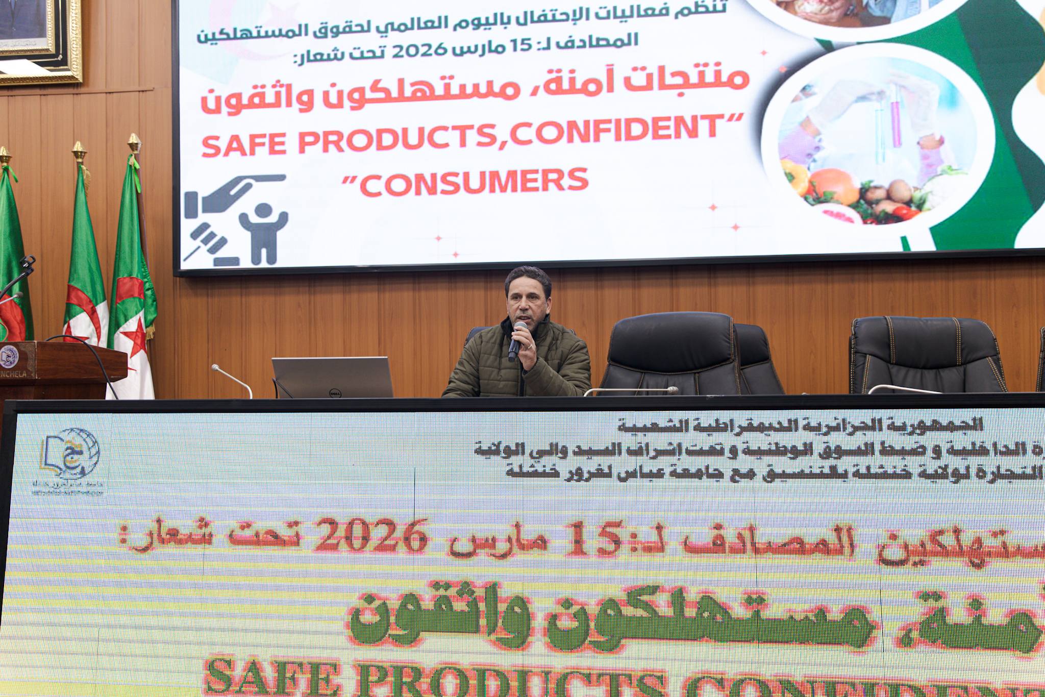 À l’occasion de la Journée mondiale des droits des consommateurs, le 15 mars 2026, la Direction du commerce de la province de Khenchela, en collaboration avec l’Université Abbes Laghrour Khenchela et plusieurs partenaires locaux, a organisé un séminaire de sensibilisation sous le slogan « Des produits sûrs, des consommateurs confiants ».