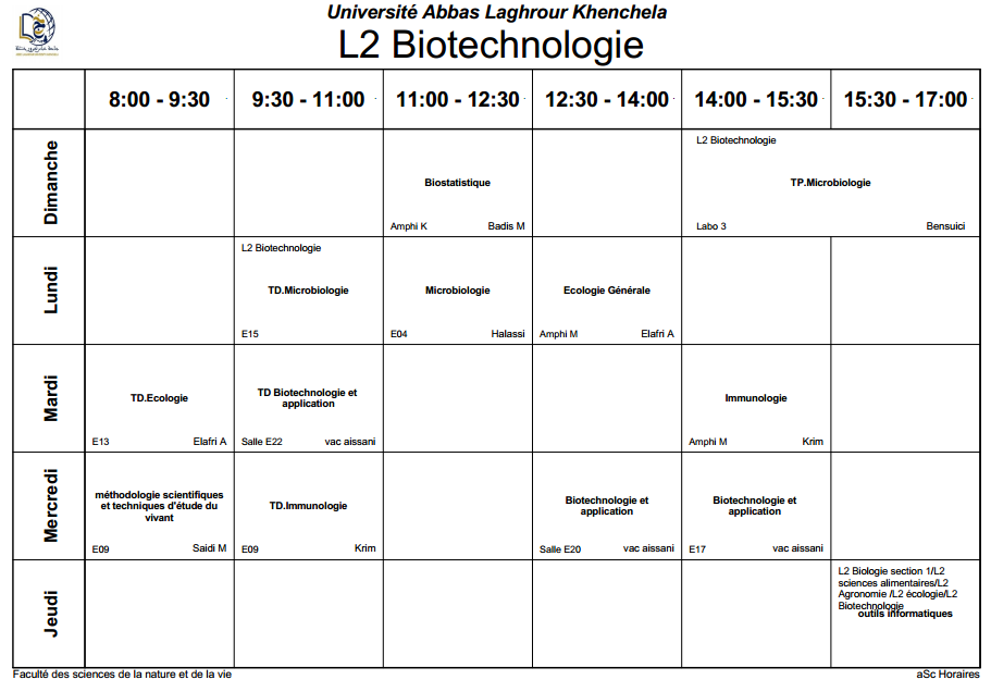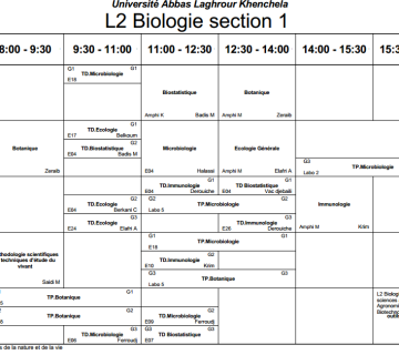 توزيع-زمني-قسم علوم الطبيعة و الحياة -ل2