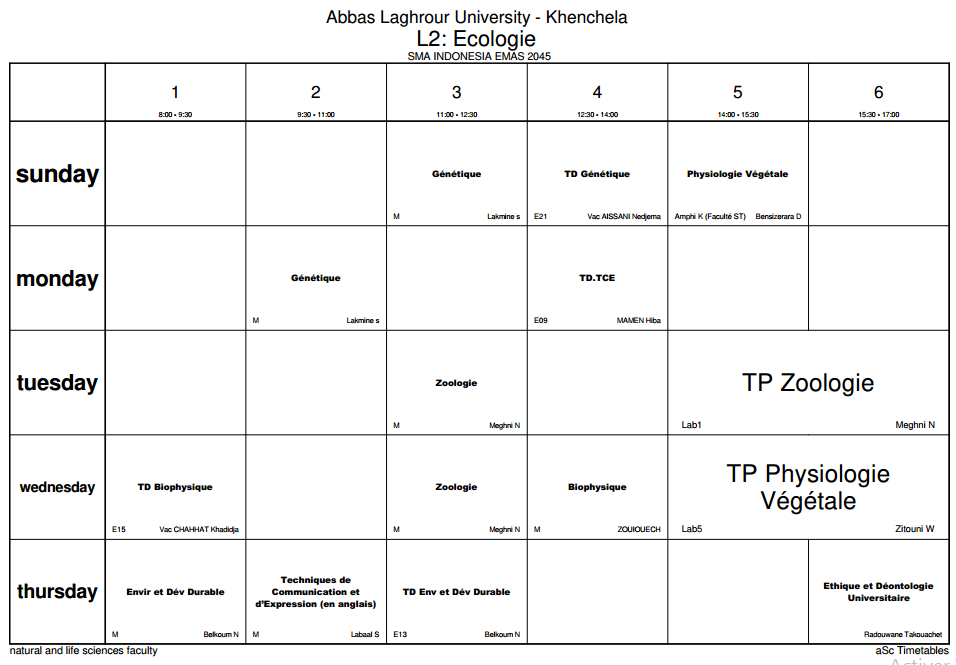 توزيع-زمني-قسم علوم الطبيعة و الحياة -ل2