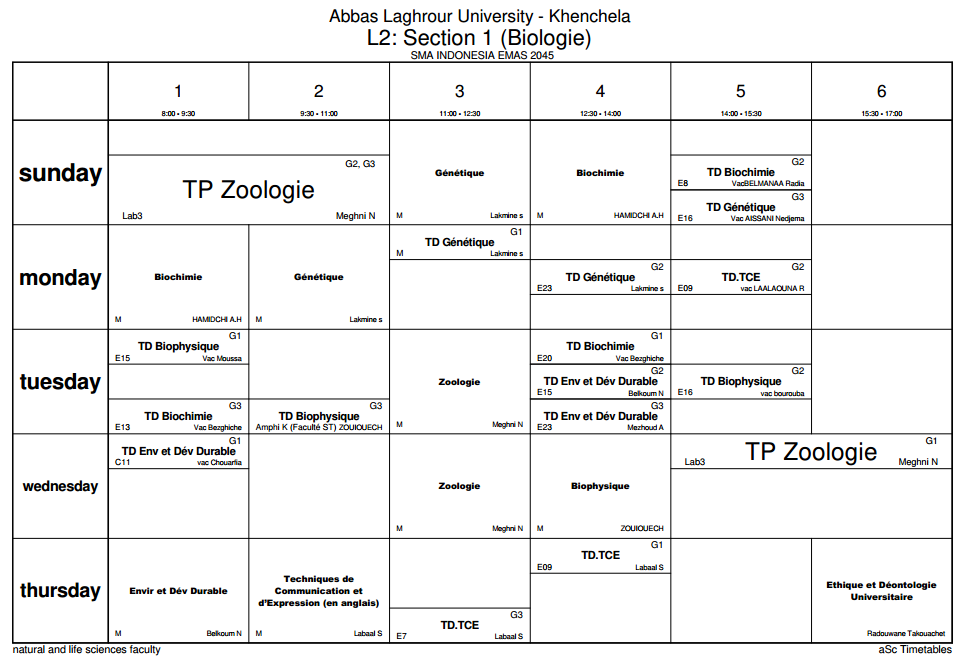 توزيع-زمني-قسم علوم الطبيعة و الحياة -ل2
