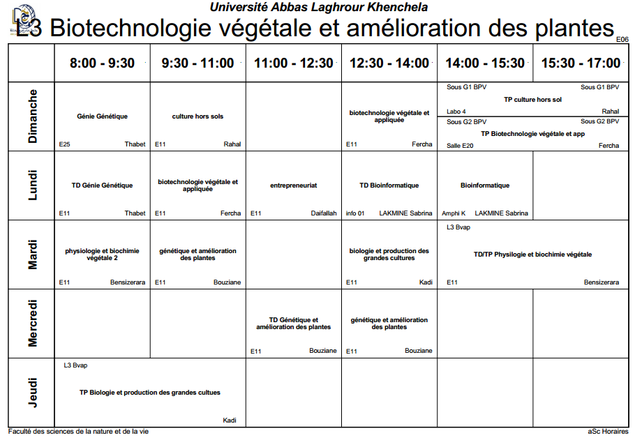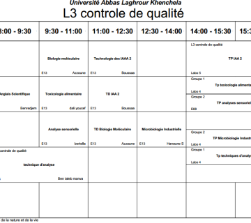 توزيع-زمني-قسم العلوم الفلاحية -ل3