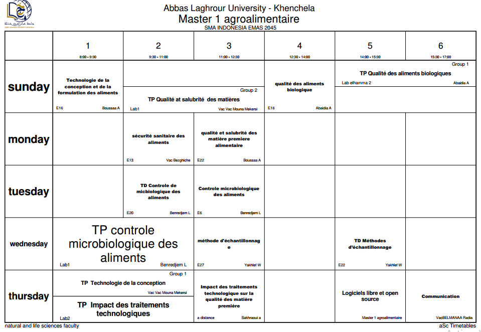توزيع-زمني قسم العلوم الفلاحية -M1