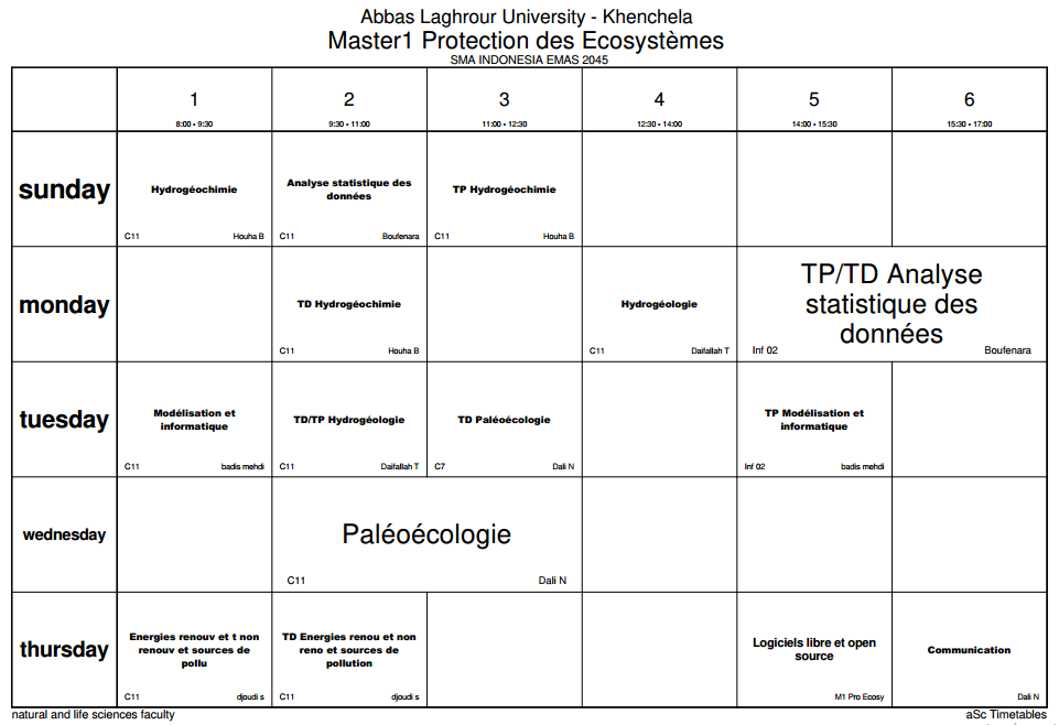 توزيع-زمني قسم البيئة و المحيط -M1
