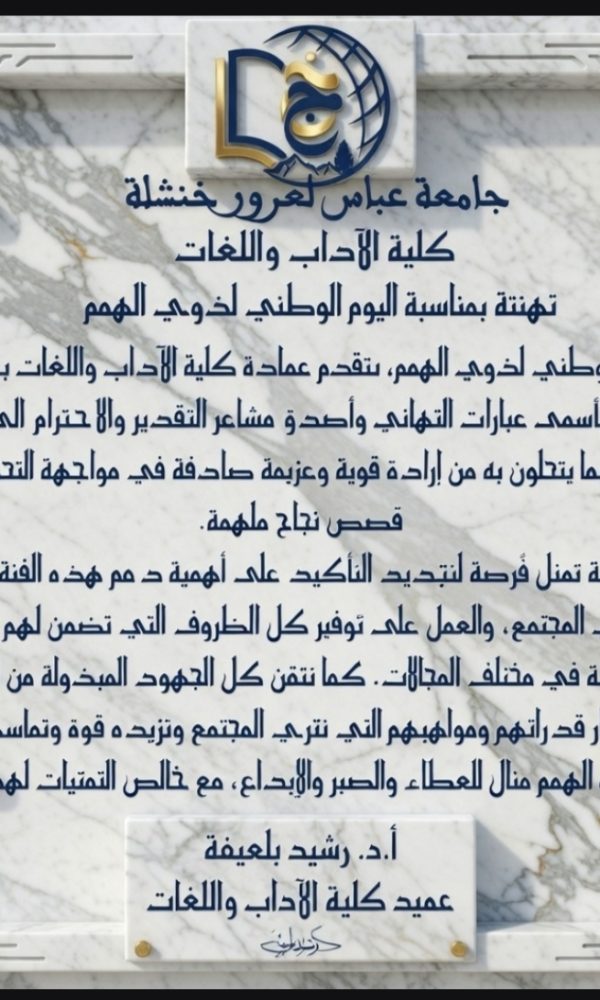 إعلان انضم إلى أسرة نادي المسرحجامعة خنشلة يسرنا دعوتكم للانضمام إلى نادي المسرح بجامعة خنشلة، حيث نوفر لكم منصة متميزة لتطوير مهاراتكم الفنية والإبداعية في بيئة أكاديمية احترافية. المسارات المتاحة للانضمام: الفرقة المسرحية فرقة التأليف المسرحي الورشات التكوينية والندوات عضوية المنتسب المهتم خطوات الانضمام: أكمل استمارة التسجيل الرسمية من خلال الرابط أدناه حدد المسار الذي يتناسب مع اهتماماتك وطموحاتك انتظر الجديد في صفحة النادي على الفيسبوك: https://www.facebook.com/share/g/1FMD6j8SVz/ رابط استمارة التسجيل:https://forms.gle/EUN8yT8dEXCk4tyE6 مرحبا بالجميع ... اقرأ أكثر