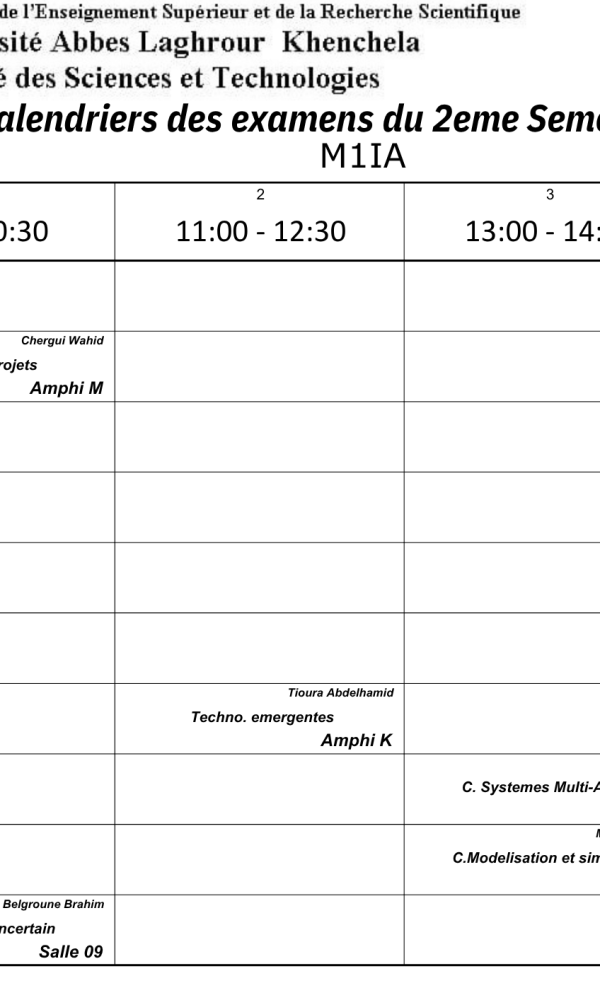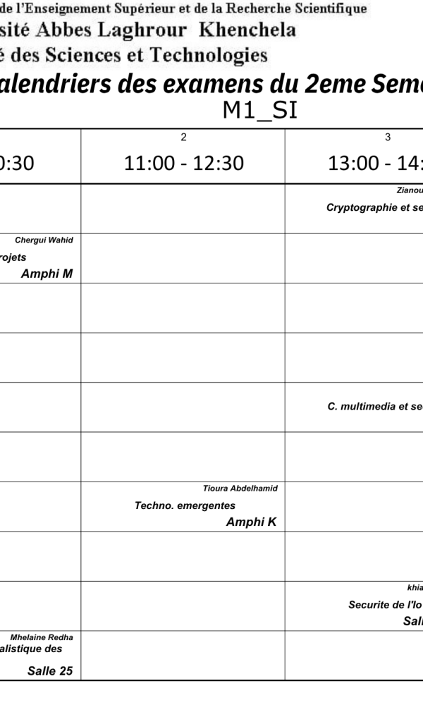 برنامج الإمتحانات قسم الاعلام الالي -M1