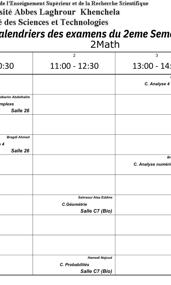 برنامج الإمتحانات-قسم الرياضيات -ل2