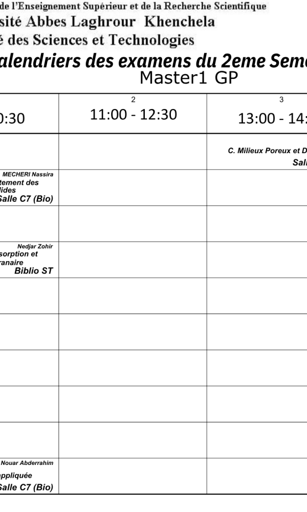 برنامج الإمتحانات قسم هندسة الطرائق -M1